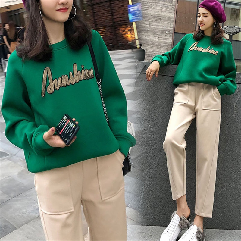 Tide brand 2022 autumn and winter new thick cotton T sportswear casual suit women's fashion slim temperament thickened two-piece suit