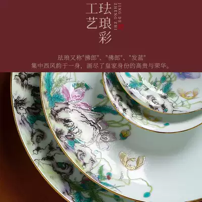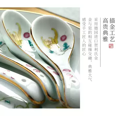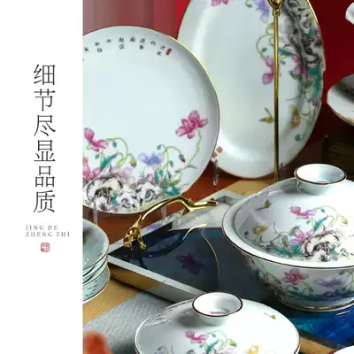 Jingdezhen high-grade Chinese shadow celadon hand-painted gold enamel tableware dish dish set combination home gift
