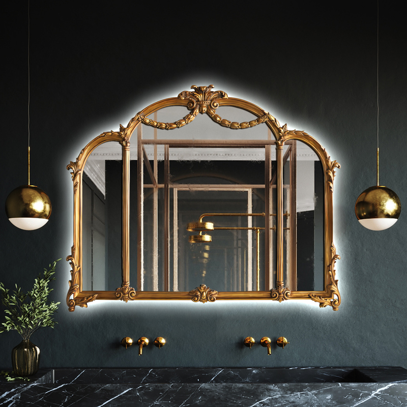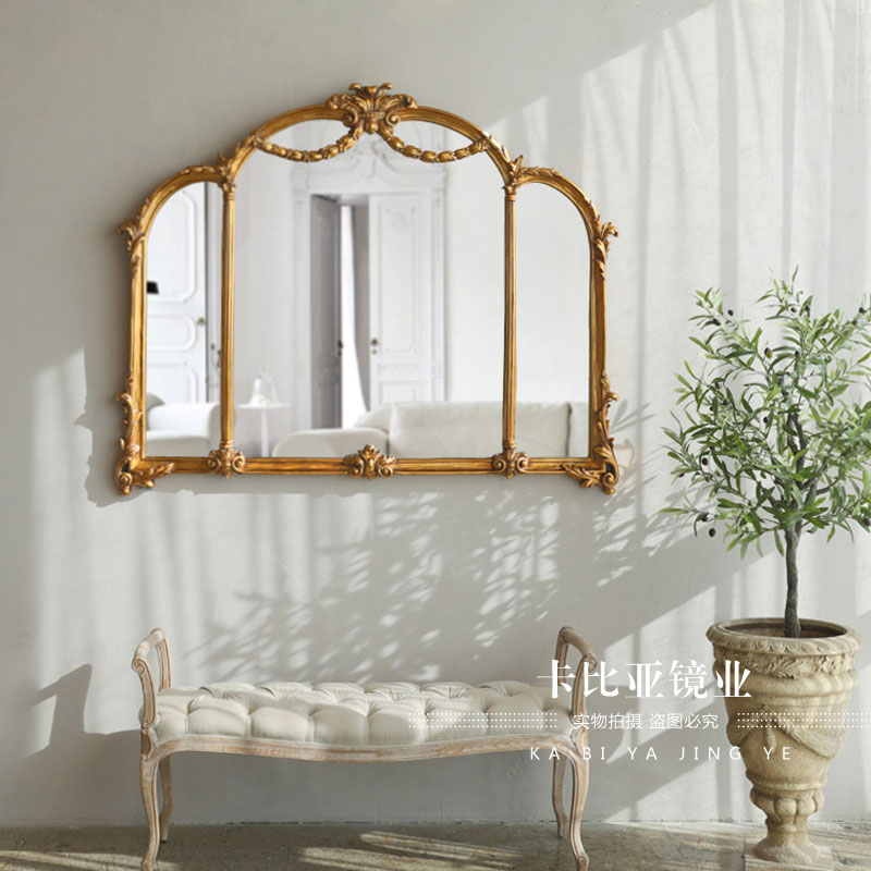 European-style retro home bathroom sticker wall hanging carved makeup dressing mirror living room art background wall decoration mirror