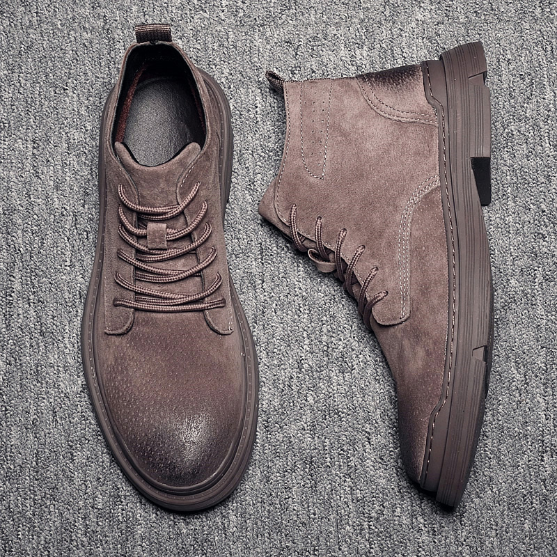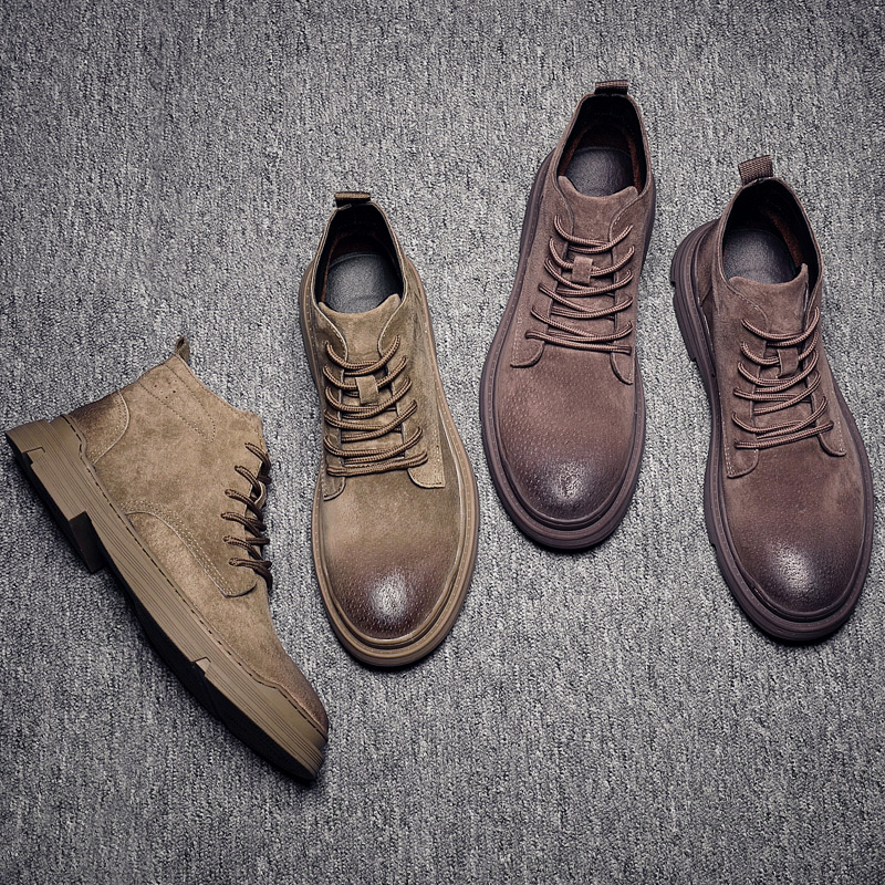 Martin Boots Male middle cylinder genuine leather winter plus soft bottom casual short boots Anti-suede leather shoes Inlenty wind retro tooling shoes