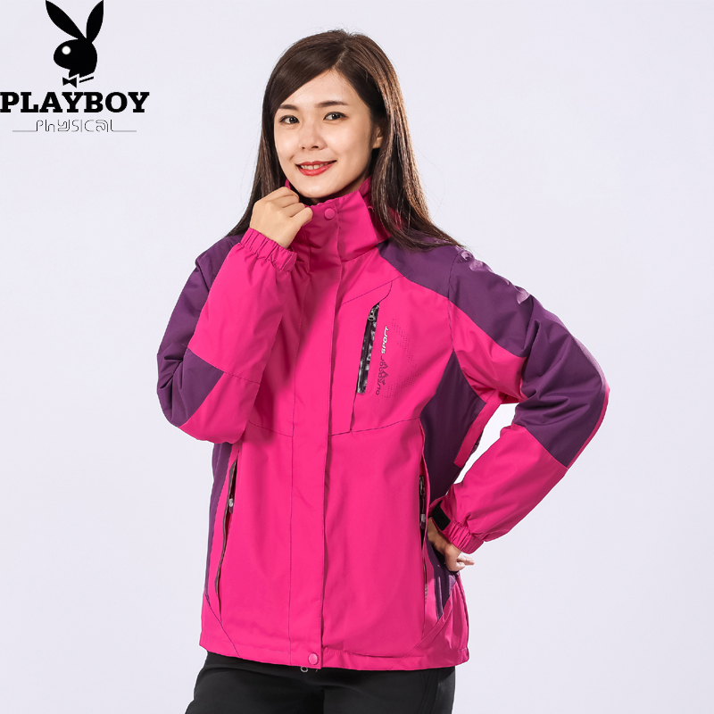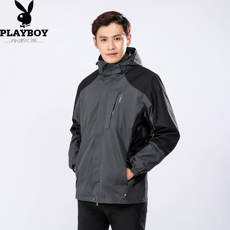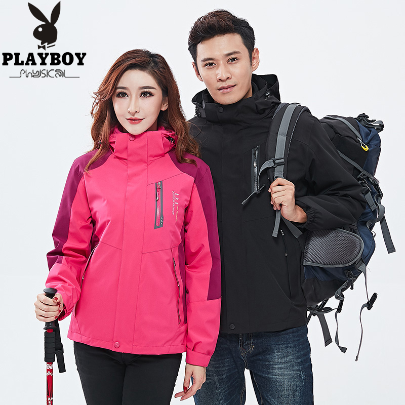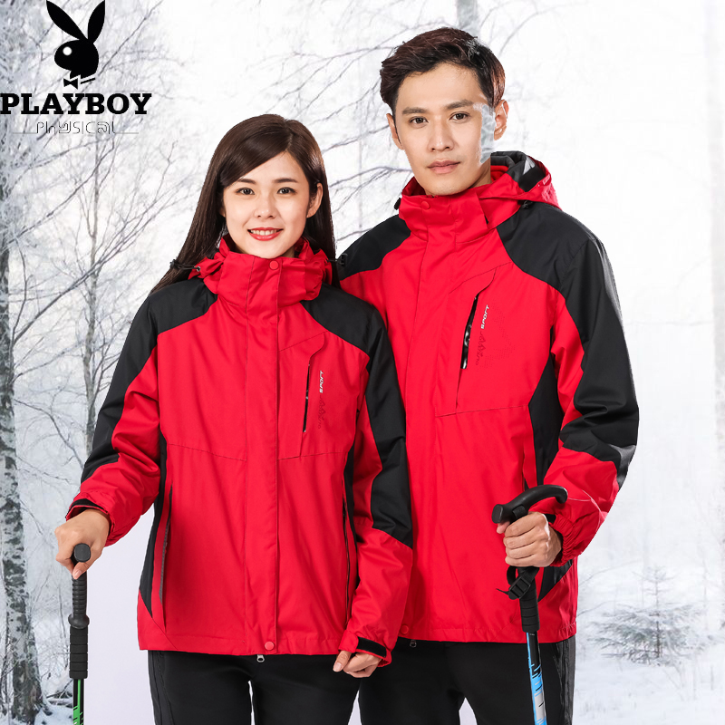 Playboy outdoor autumn and winter jackets for men and women three-in-one removable plus velvet thickening couple two-piece tide brand