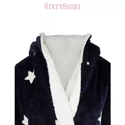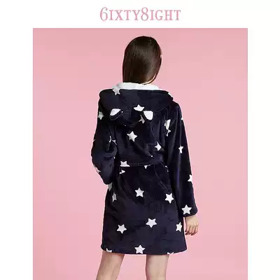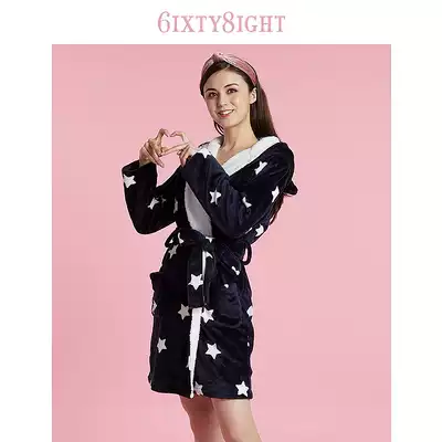 6IXTY8IGHT 68 Pajamas Sweet Star Print Thick Plus Velvet Warm Home Long Edition HW07719