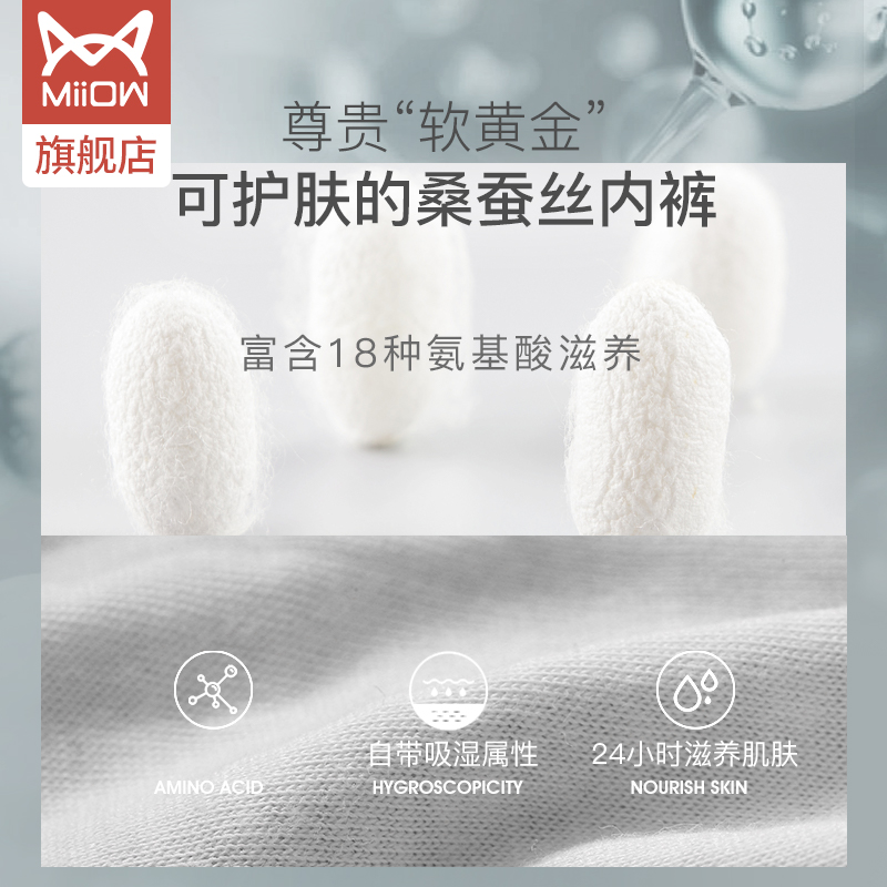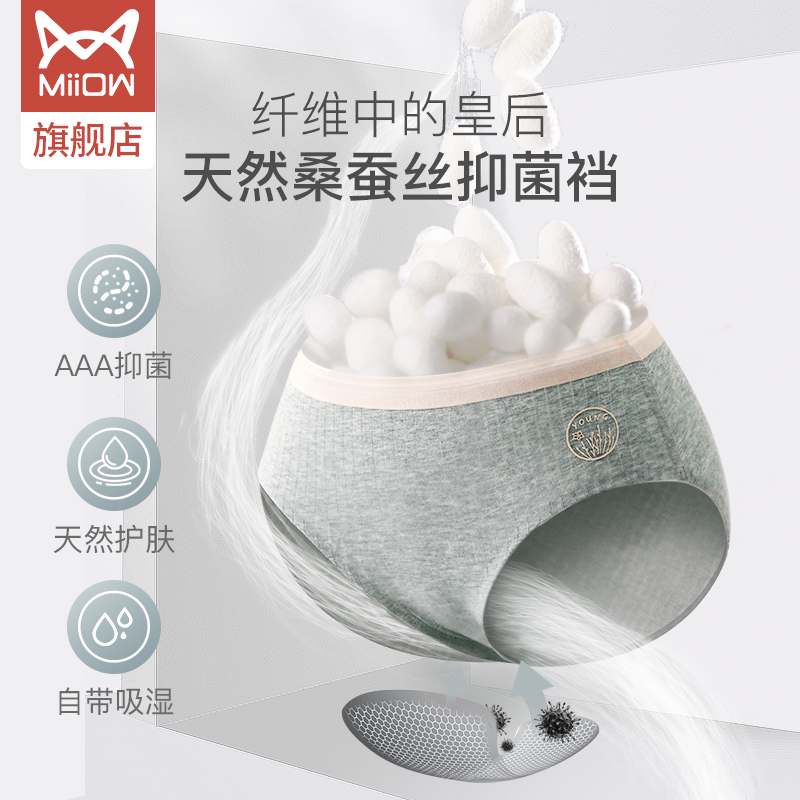 Cat Man 50 Mulberry Silk Inhibition Crotch No Mark Mid-Waist Girl Sexy Breathable Plus-Size Cotton Ladies Panties