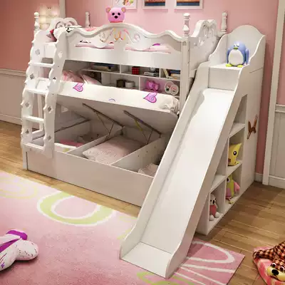 Bunk bed Double bunk bed Children's bed Girl princess bed Dream two-story high and low bed Bunk bed Wooden bed with slide bed
