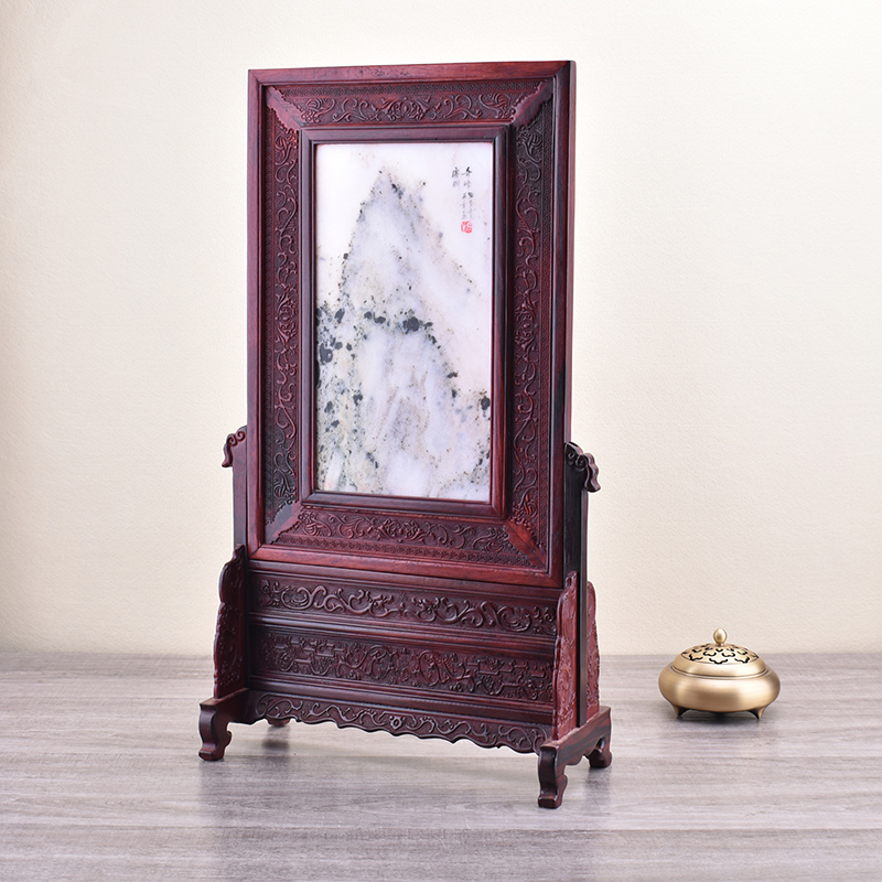Mahogany carving ornaments Zhongtang retro solid wood table screen socket inlaid marble surface dining room plug-in screen can be customized