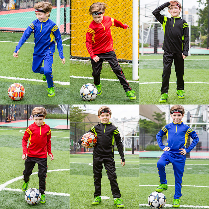 Football suit Children's football suit suit Autumn and winter velvet training suit Long-sleeved football clothes for teenagers