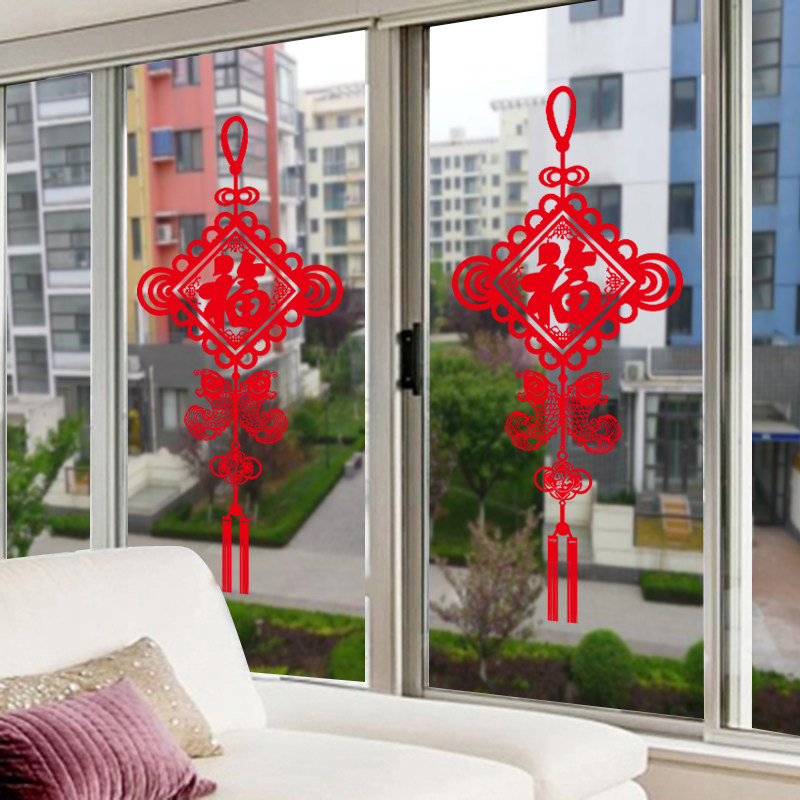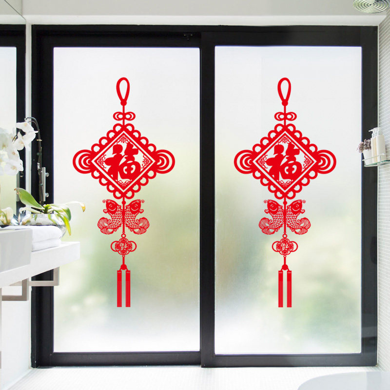 China Knots Festive Decorations Glass Doors And Windows Stickles Bifacial Stickup Living-room Horizontal balcony Ramen Anti-collision Decorative Sticker
