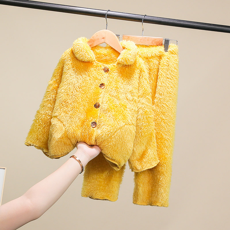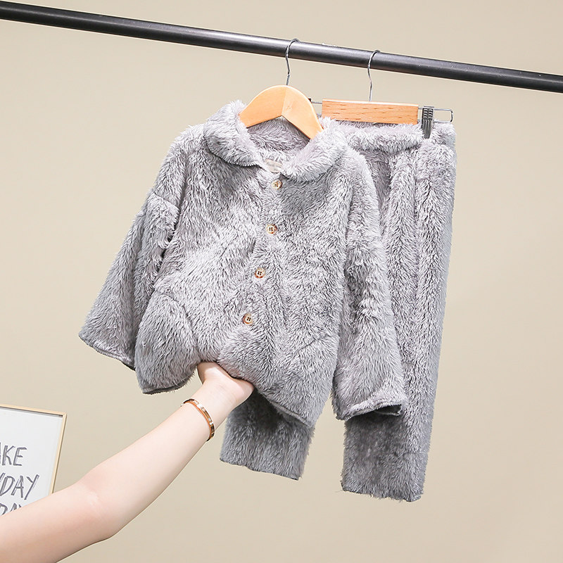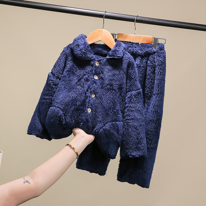 Children's flannel pyjamas suit warm autumn and winter style boy Cavet Home Girl Baby Thickened Coral Suede