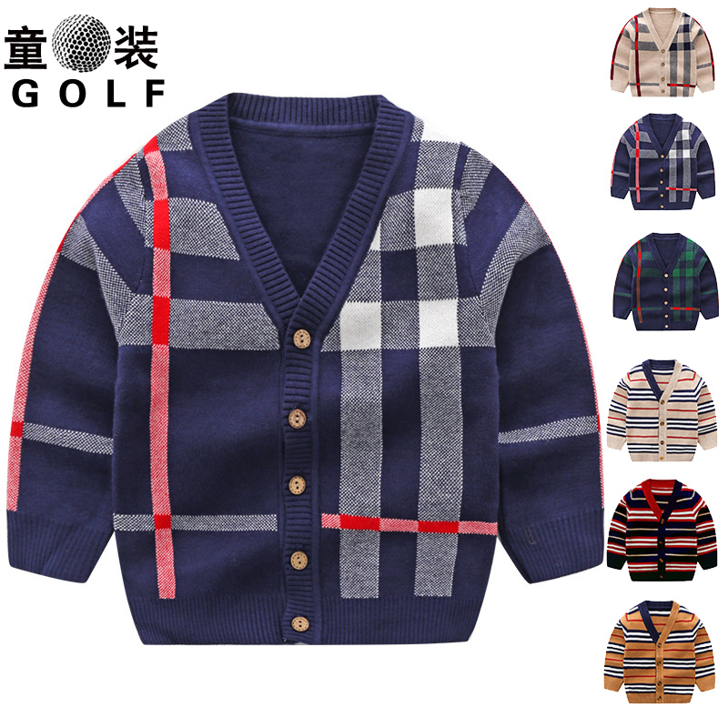 Children Golf Clothes Clothing Girl Long Sleeve Sweater Jacket Autumn Winter Boy Plaid Knitwear Warm And Sanitary Clothing