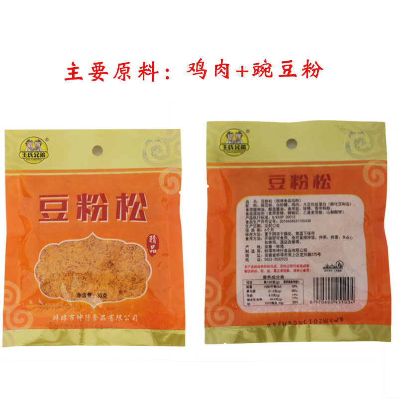 Pea powder White sugar Chicken soy protein (puffed soybean products)Edible vegetable oil Brewing soy sauce Edible salt Monosodium glutamate spice powder Food additives (food flavor pepper red ethyl maltol sorbic acid