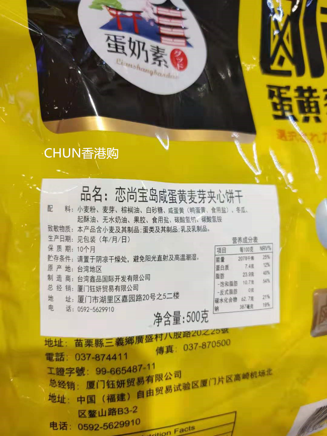 Net red money Taiwan imported Love Shangbao Island thin and salty egg yolk black sugar biscuit malty small round cake bagged 500g