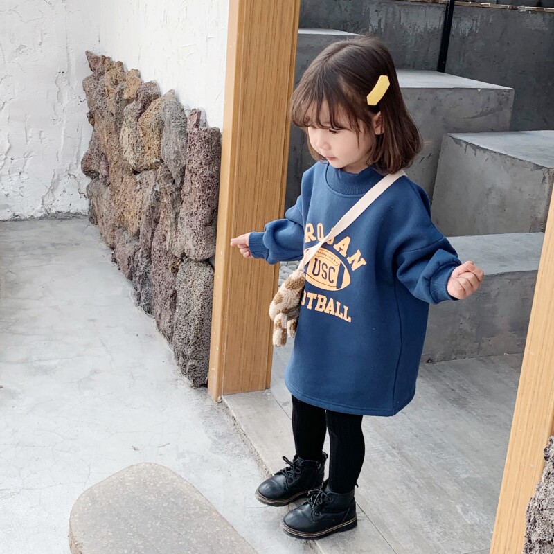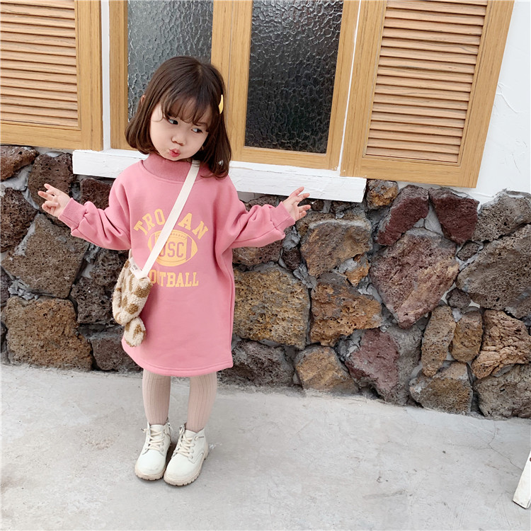 Children's tops autumn and winter 2022 children's clothing new girls' treasure Korean version of the Western style thickened and velvet mid-length sweater skirt trend