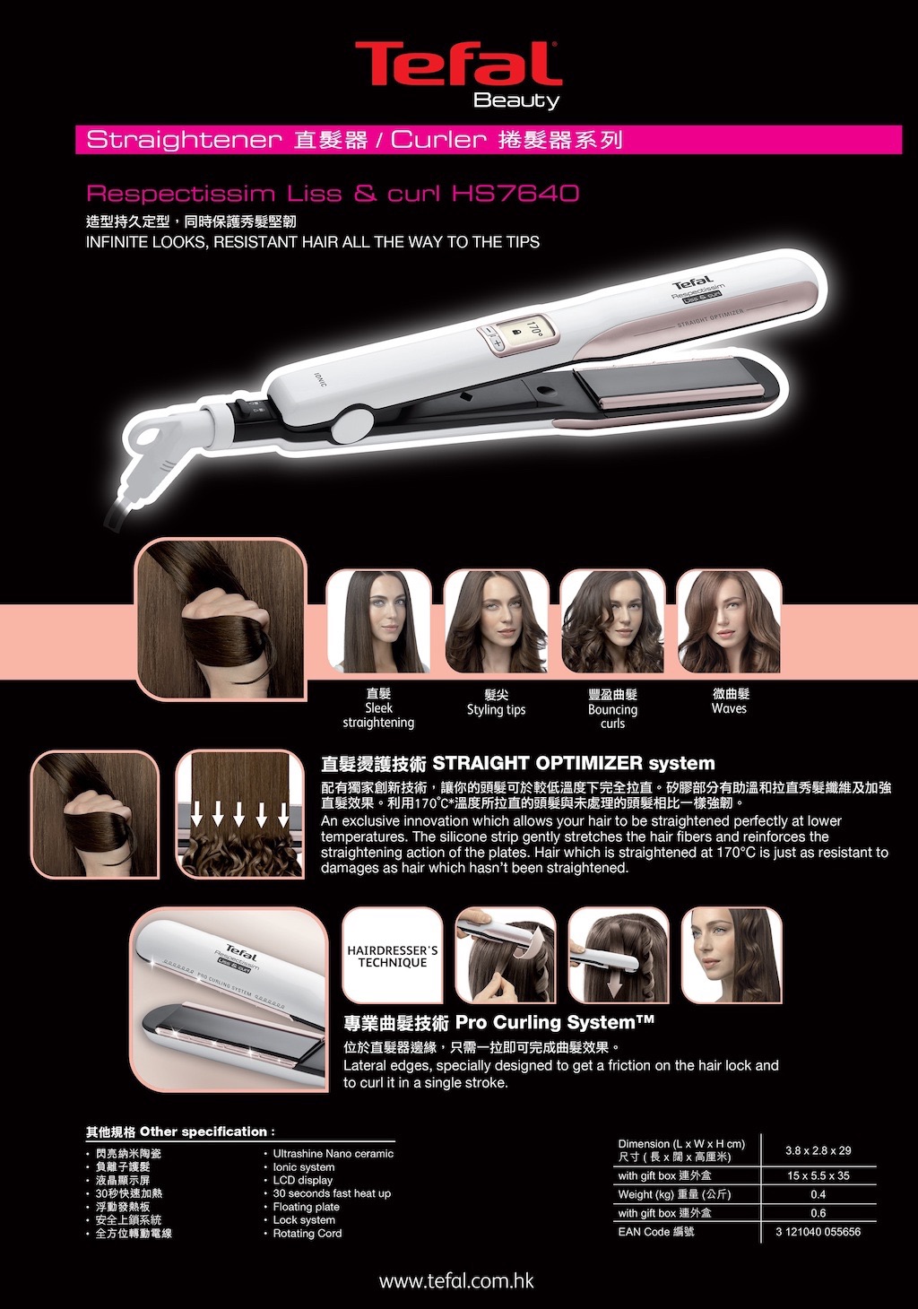 Tefal Tefal HS7640 Hair Straightener LCD Display Shiny Nano Ceramic 2-in-1 Styling Splint