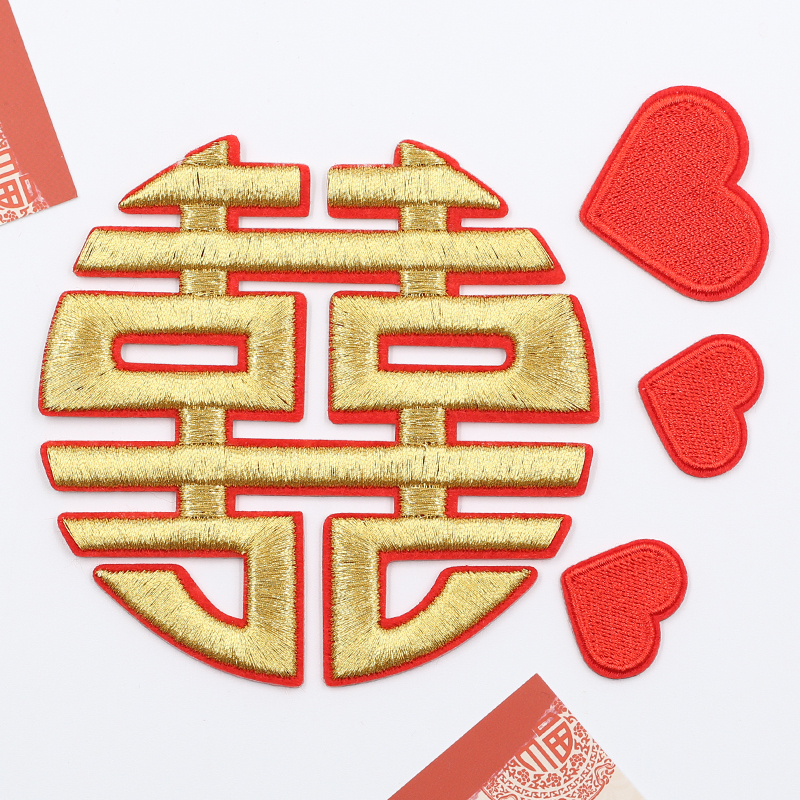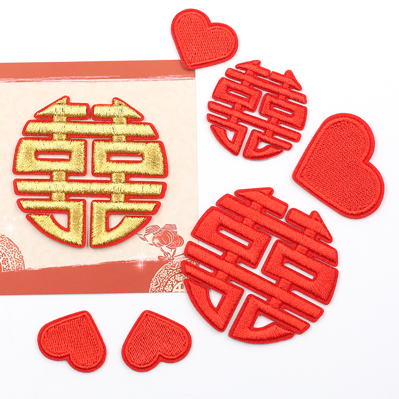 Happy Words Large Red Cloth Patch Wedding House Decoration Embroidered Wedding Wedding Wedding Wedding Celebration Clothes Diy Love Cloth Patch Pattern Applic