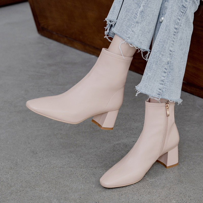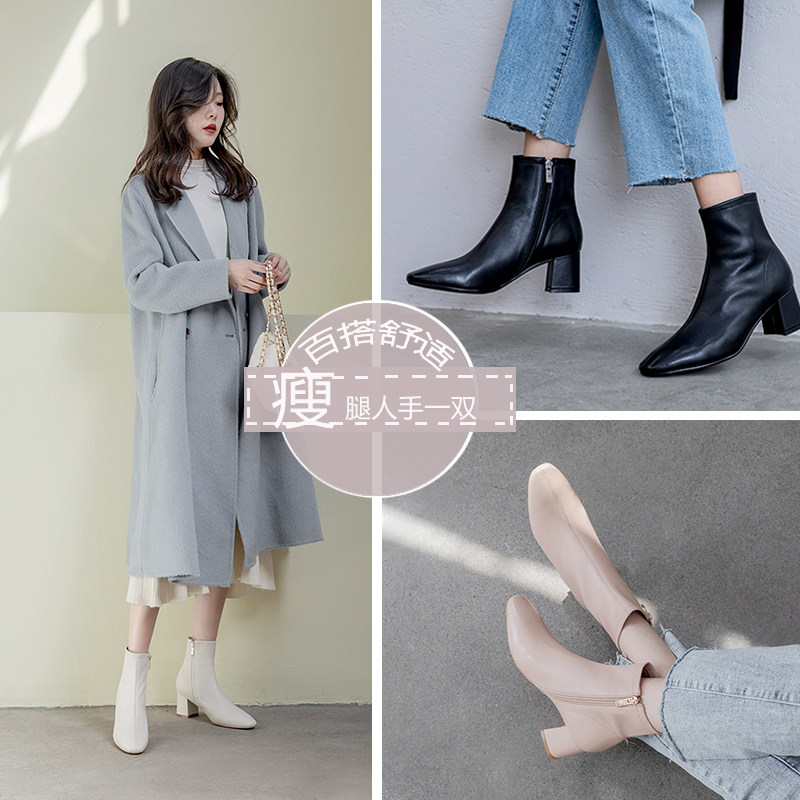 Boots 2022 early autumn boots female thin boots white and thin with Martin high and half barrel spring and autumn single boots