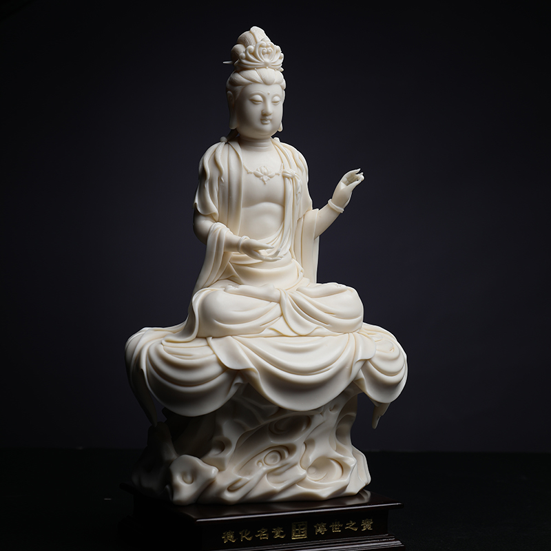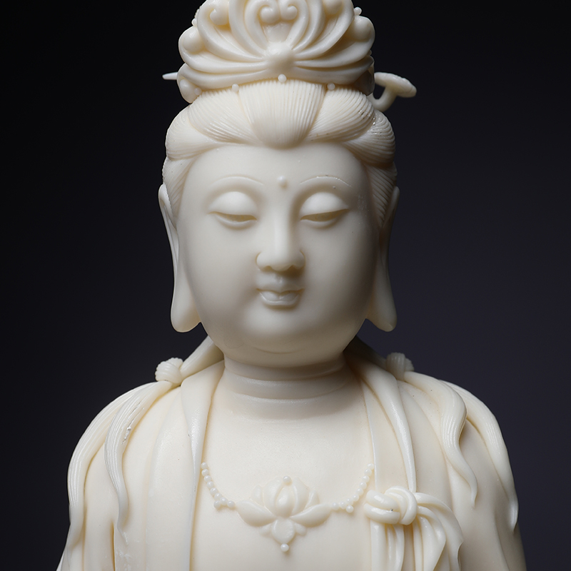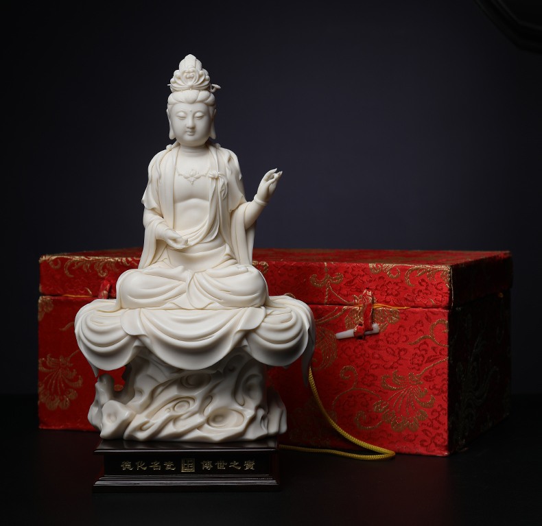 Dai Yutang Ceramic Decoration "Jade Yellow Porcelain De Wang Guanyin Bodhisattva" Lin Jiansheng Guanyin Buddha Statue Living Room Decoration