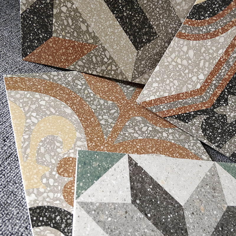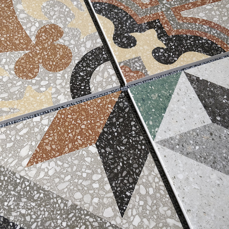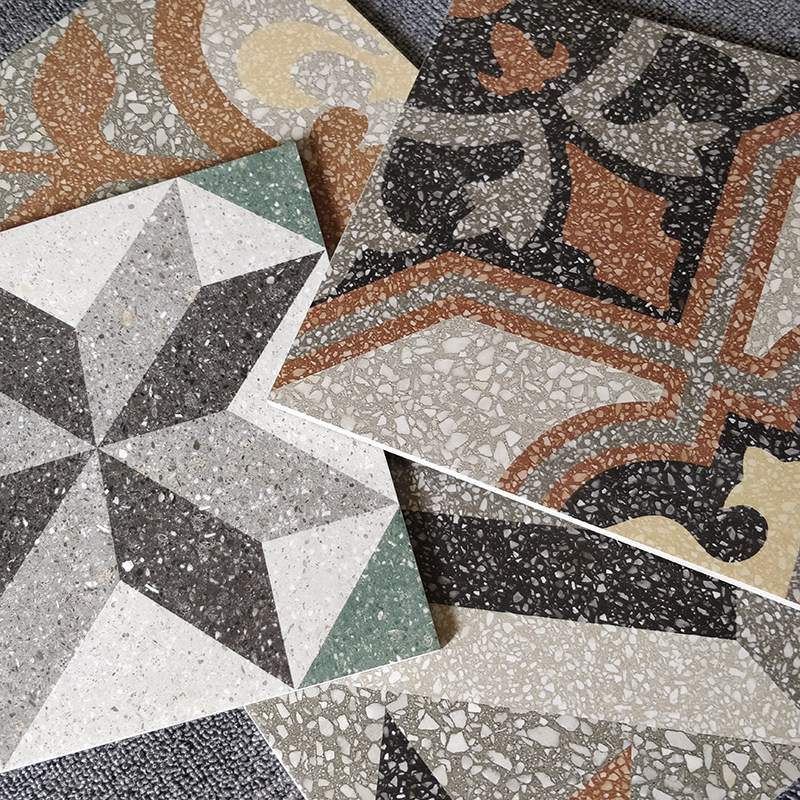 Retro water grinding stone flowers brick 250 * 250 Minjuku kitchen anti-slip floor brick hotel grey parquet tile set to do