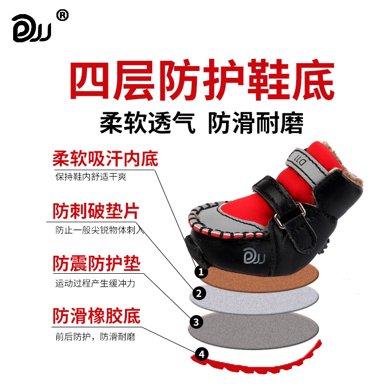 DJJ Dog Shoes Teddy Bears Golden Hair Schnauzer Dog Shoes Pet Shoes Winter Warm Cotton Shoes 4 Pack