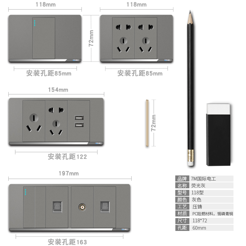 One panel Two-seat panel Three-panel five-hole socket module (account for one) Three-hole 16A socket module (make up one) One single double cut universal module (make up one) Small two-opening single double