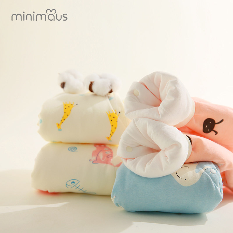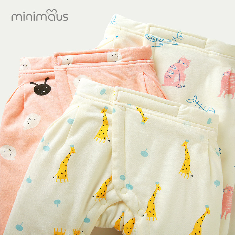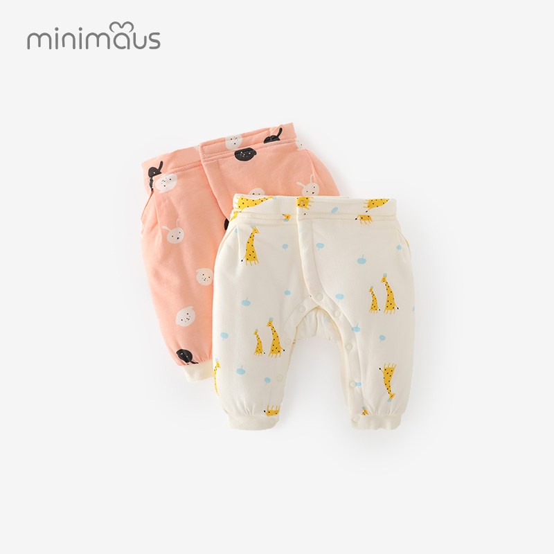 Baby cotton trousers thickened cotton trousers winter clothes quilted newborn baby open crotch snap button baby Velcro warm pants
