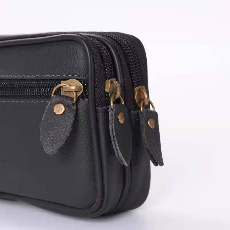 Leather mobile phone running bag men wear belt 6 5 inch multifunctional cowhide hanging bag 2 horizontal work mobile phone bag