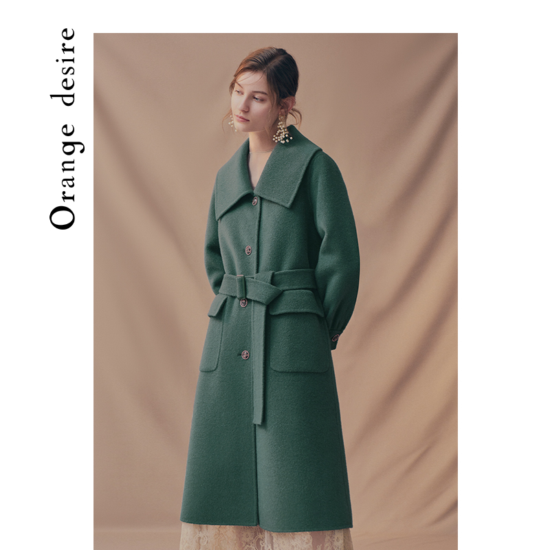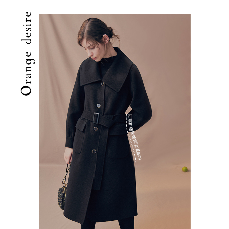 Orange Desire double-sided wool coat women's 2020 winter popular long version coat temperament belt
