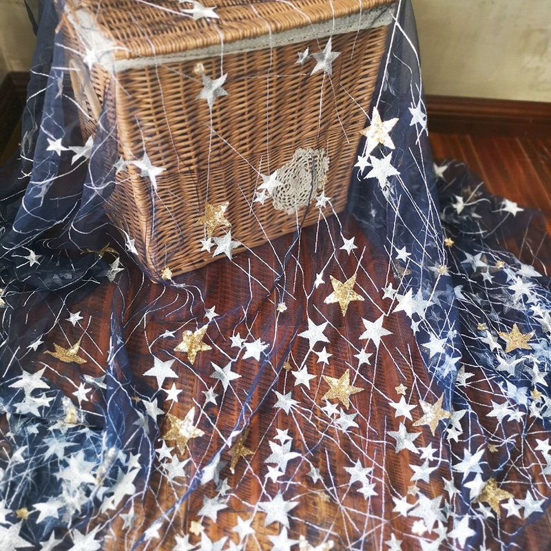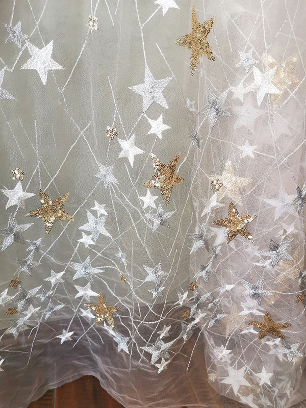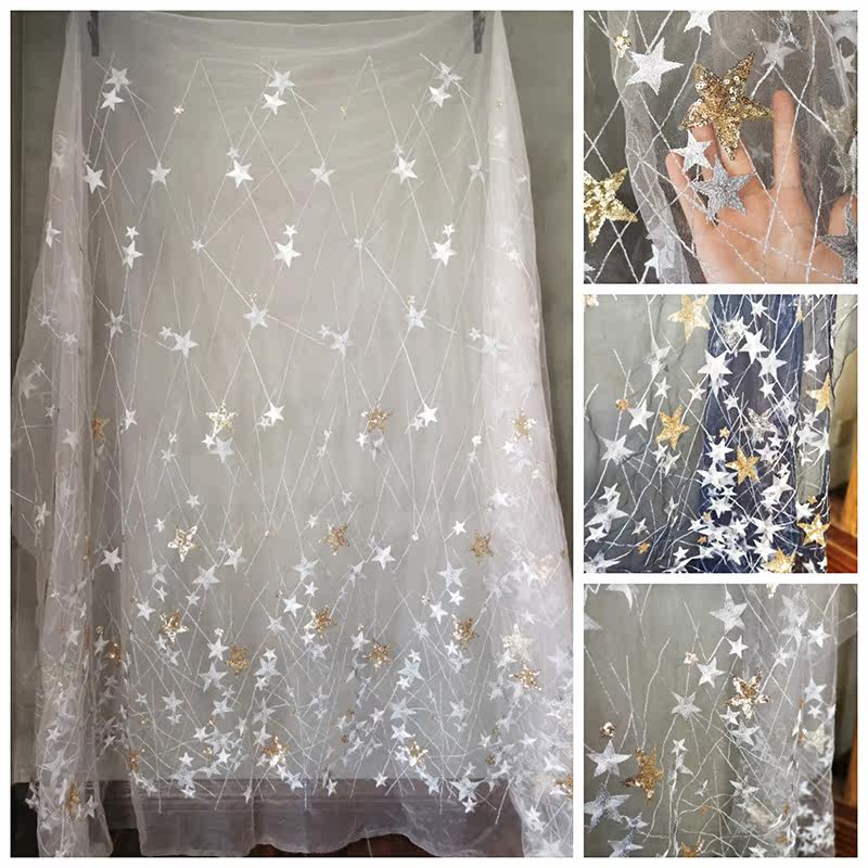 Tri-color diy wedding dress fashion gauze skirt transparent gold sequin silver star soft draped mesh yarn