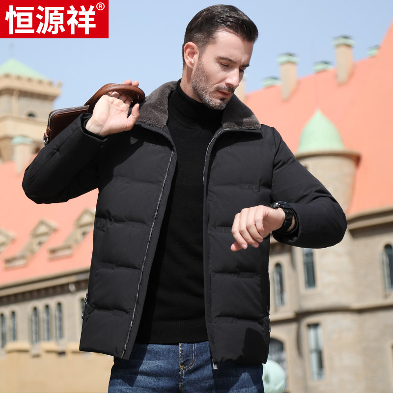 Hengyuan Xiang Men's Duvet Clothing Winter Casual White Duck Suede Thickened Middle-aged Dad Winter Clothing Jacket Anti-Chill Wear Woolen Collar