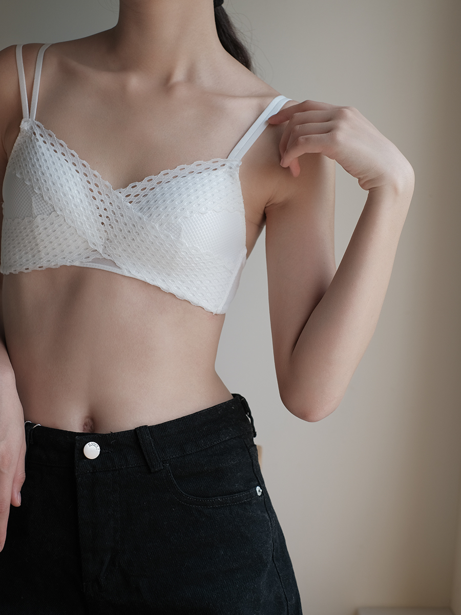 Xinbang helped Bra Japanese simple solid color cross-cutout underwear women's underwire bra with a student bra