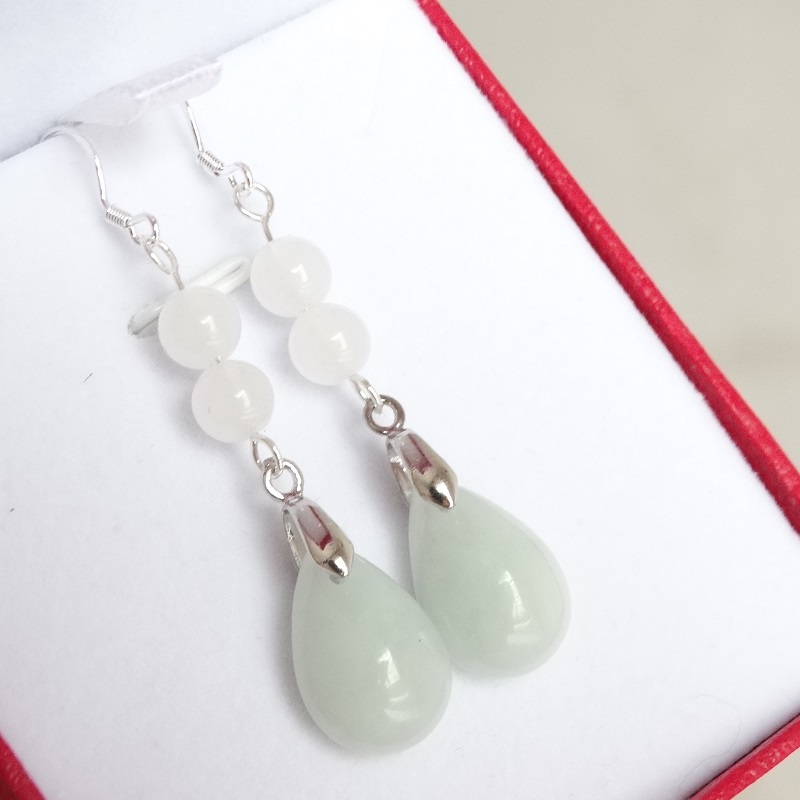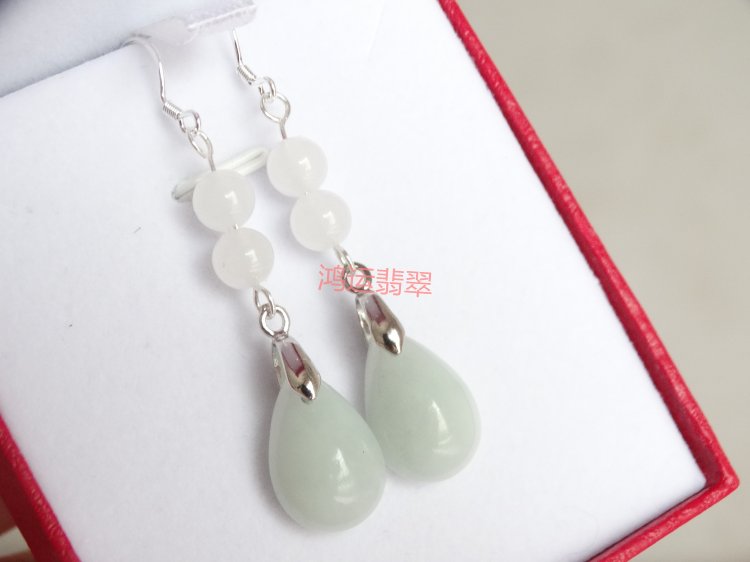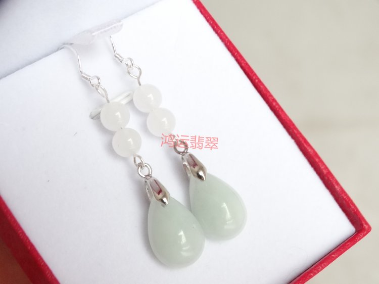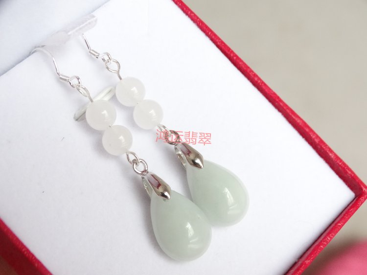 The beauty of the beauty of the natural emerald A merchandise of the wealth of the water droplet jade ear crash S990 pure silver anti - allergic jade ear crash