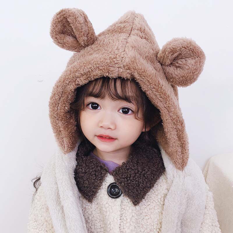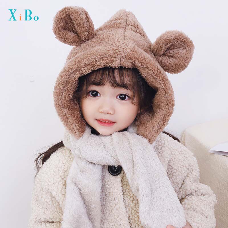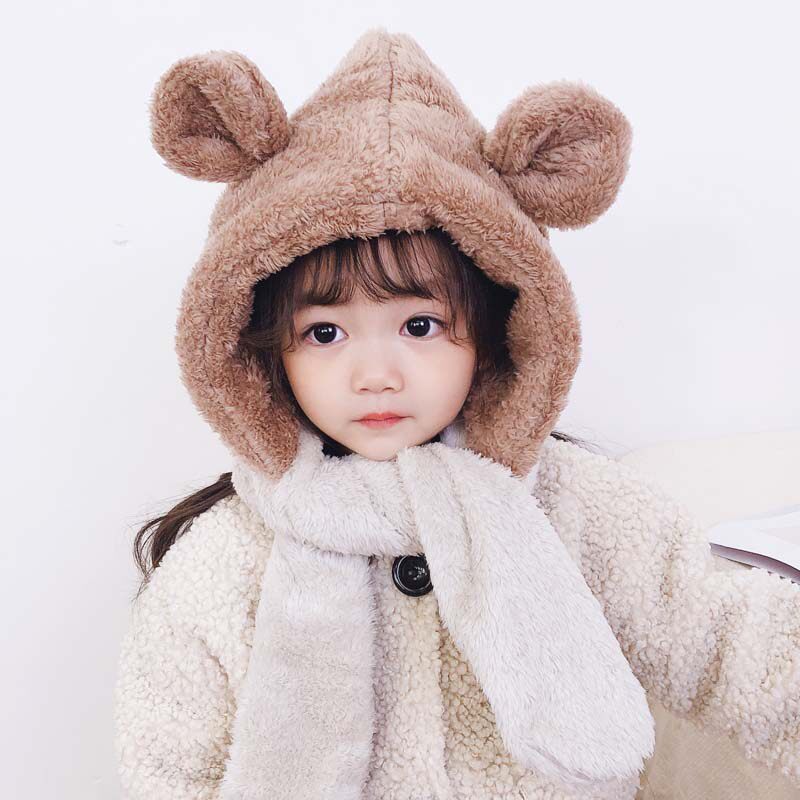 Children's hat winter girl baby warm scarf one boy plus velvet ear cap baby go out windproof autumn and winter