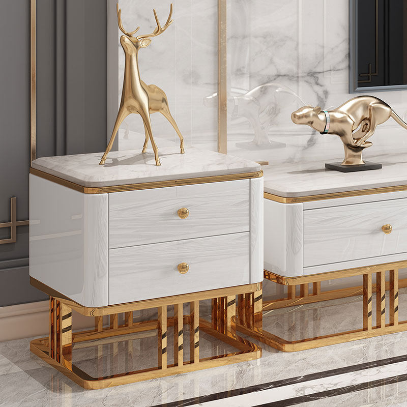 Modern light luxury style side corner table living room stainless steel small coffee table square corner cabinet simple TV cabinet side table
