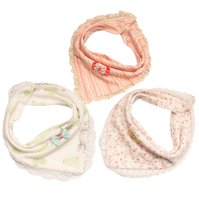 Lace female baby triangle saliva towel Pure cotton infant children bib pocket double snap buckle scarf sweet