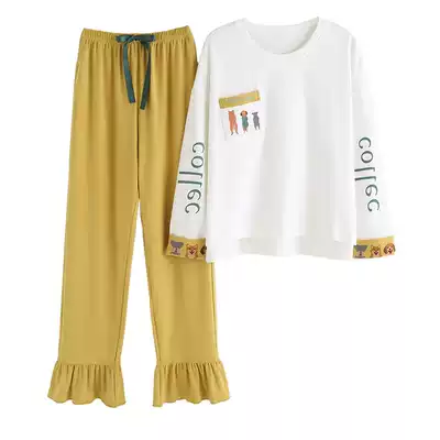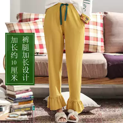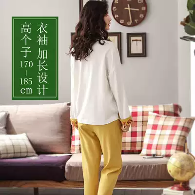 Extended pajamas women's tall long-sleeved trousers pure cotton spring and autumn two-piece set cotton 175 sets of home clothes ultra-long