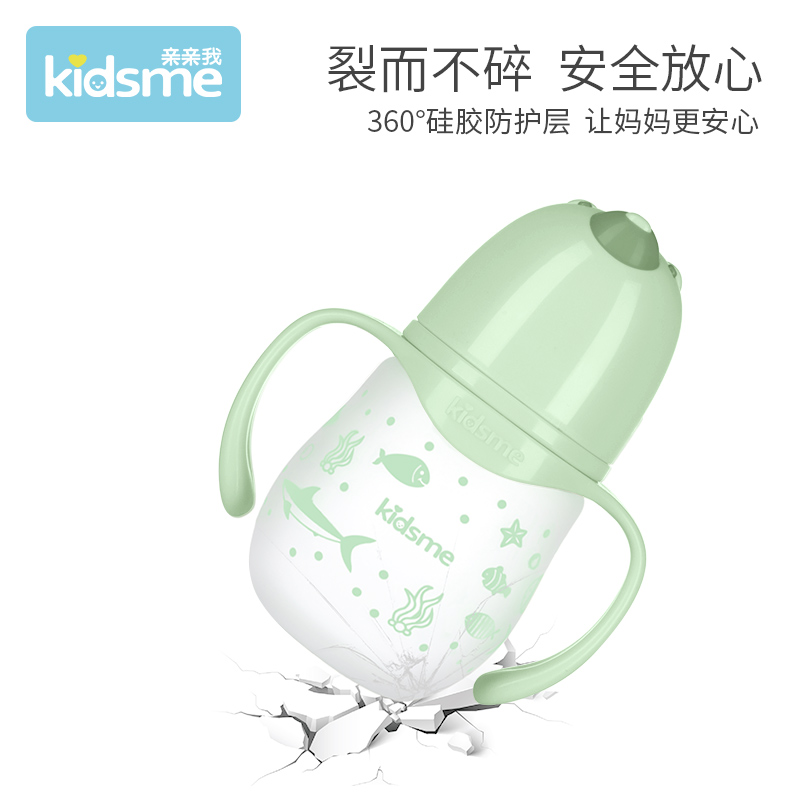 Pro-kiss me glass bottle newborn baby wide calibre Silicone Baby Bottle 6 more months Little Bear straw cup a