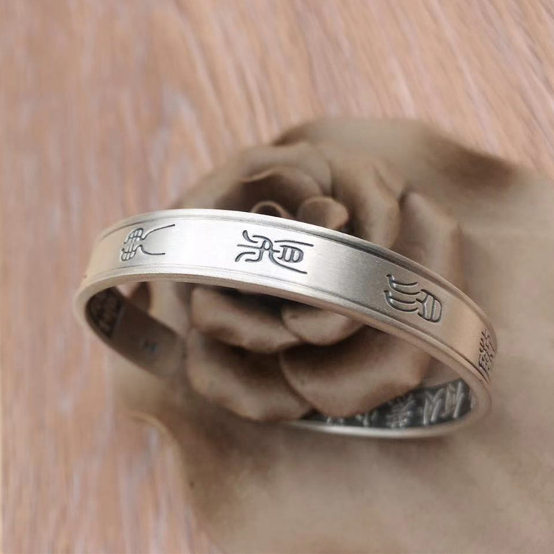 Silver bracelet 999 pure silver male pure silver male and female bracelet silver bracelet with nine characters true to the hand ring personality retro bully