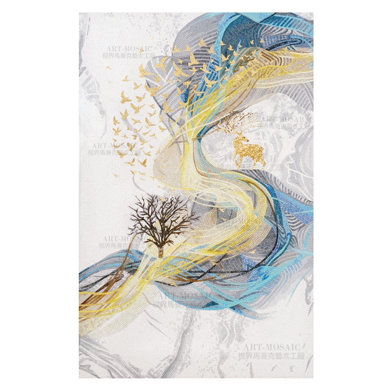 Personalized customization Modern simple blue abstract light luxury art Mosaic cut painting Tile wall sticker mural