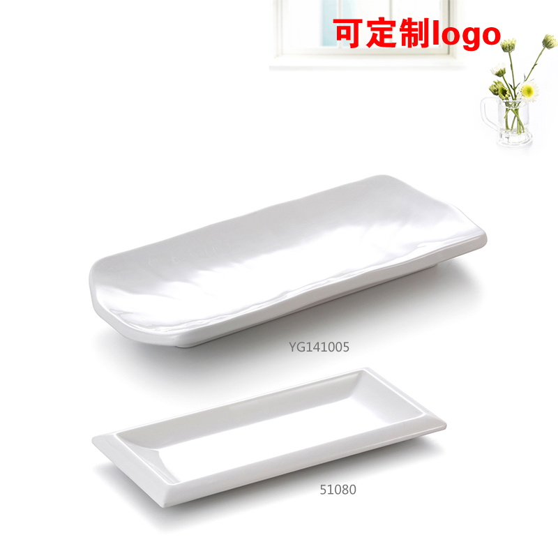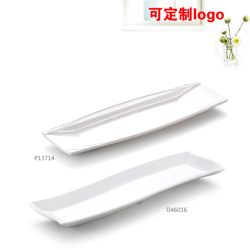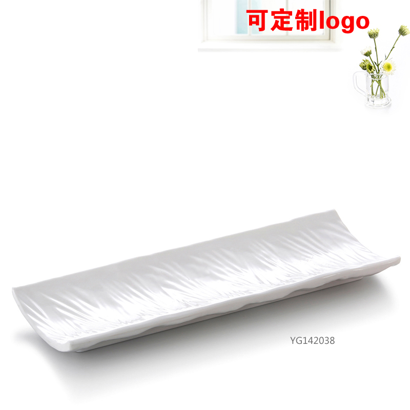 Strip white imitation porcelain tray Melamine Cutlery Hotel Dining Room Fiery Pan shop pan Sub-rectangular tray