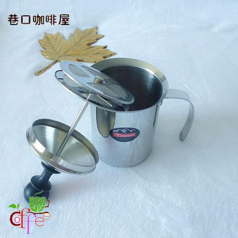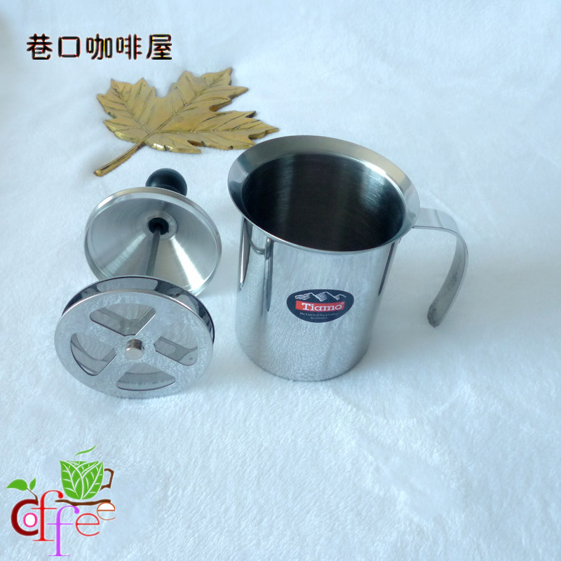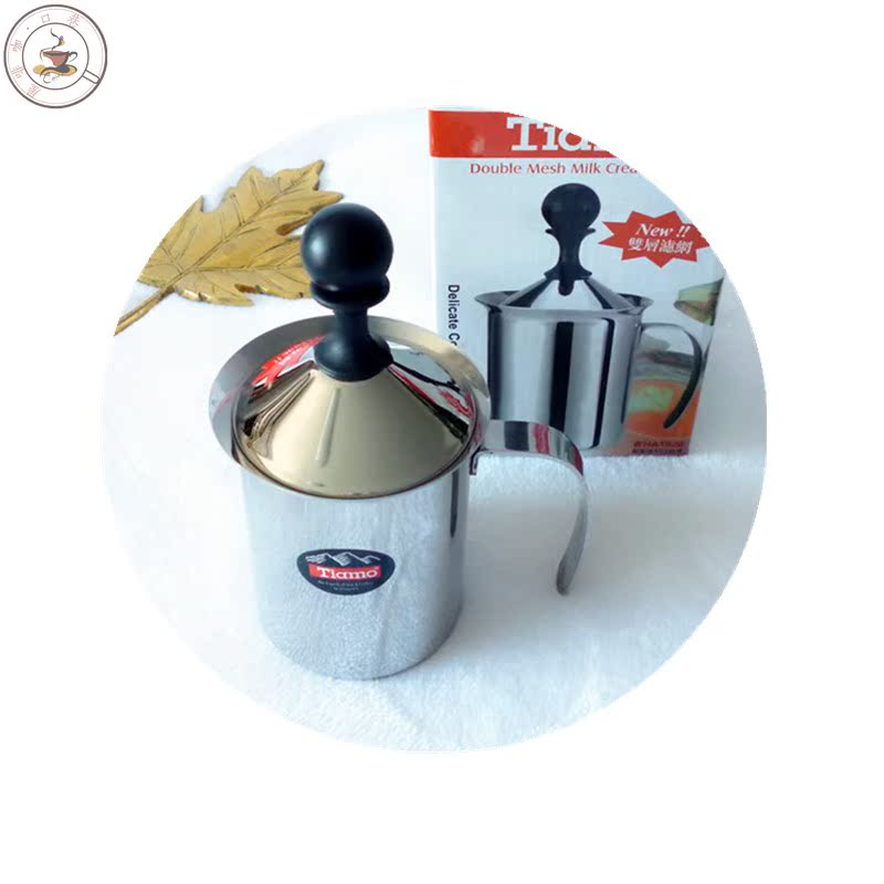 Coffee pull flower cup tiamo manual milk maker Double-layer stainless steel milk frother manual double-layer coffee milk frother