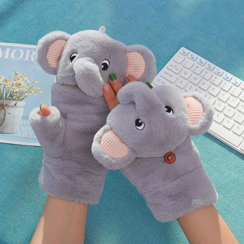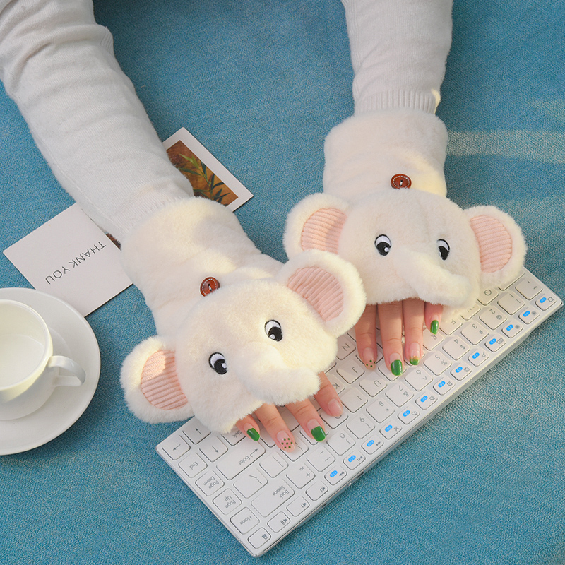 Winter Korean version thickened cycling cute warm cartoon cold-proof winter gloves female students plus velvet Japanese flip cover