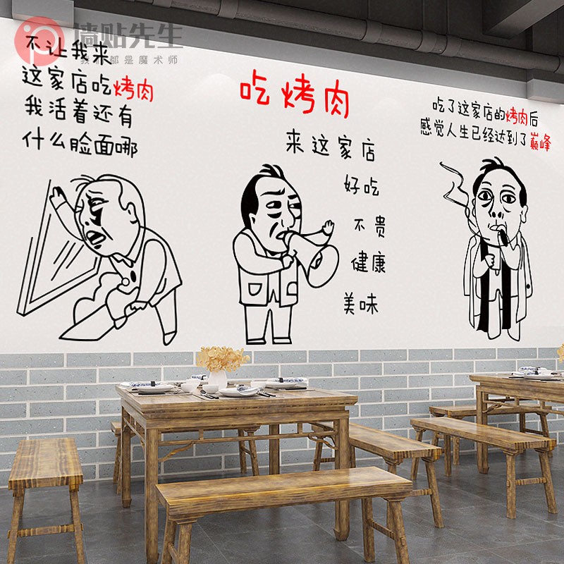 Roast Meat Shop Barbecue shop Decoration Creative Wall Dining Room Hotel Roll of funny text post Paper Collage Wall Sticker
