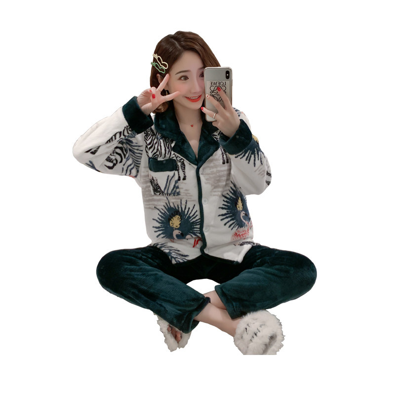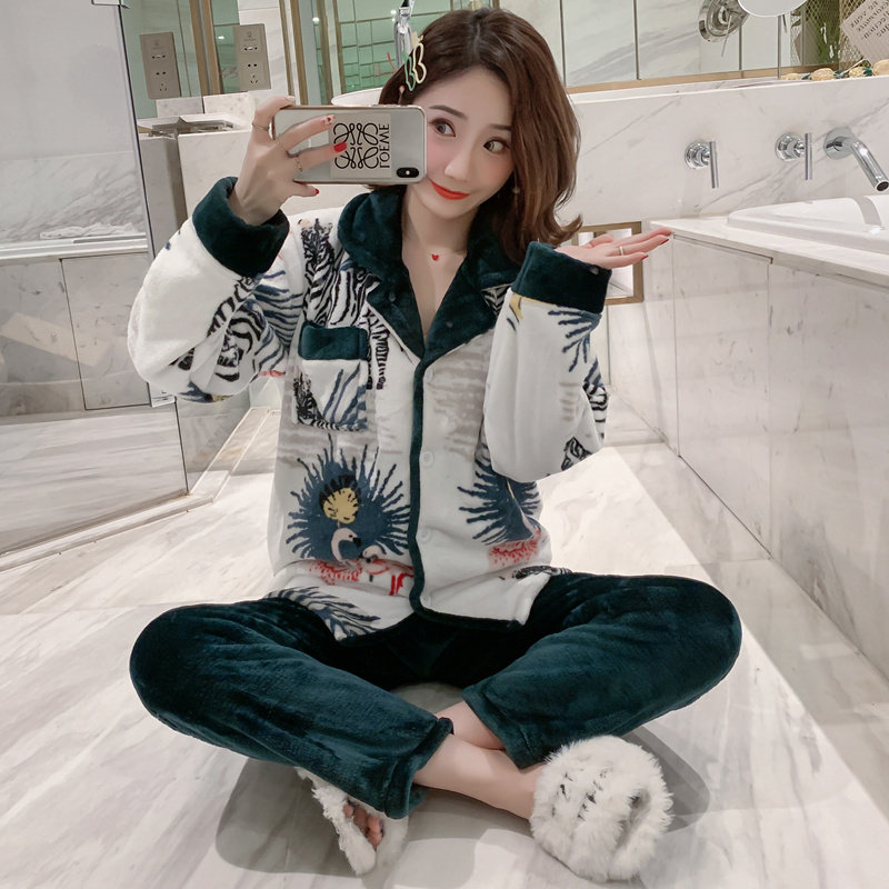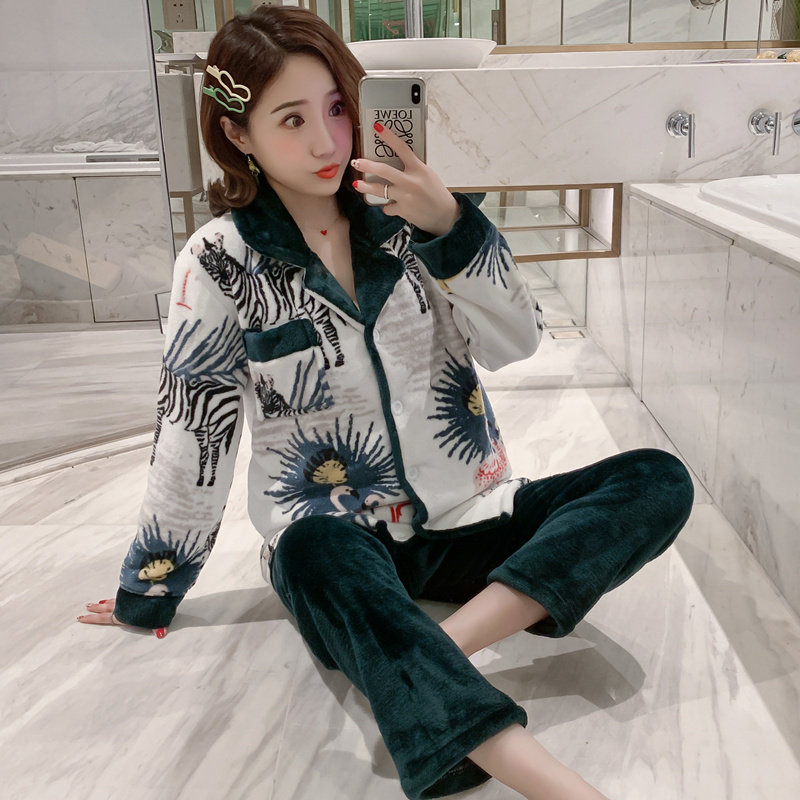Winter thickening coral plush female plush warm suit fall flannel sweater long sleeve home suit