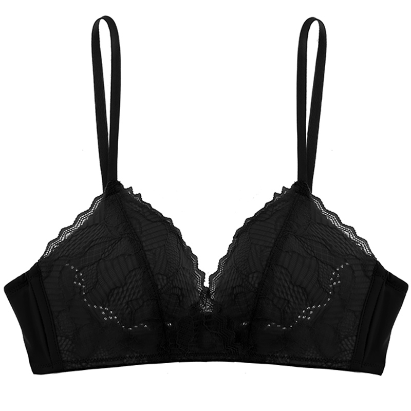Curious Miss French Lingerie Women's Summer Small Chest Gathered Underwire-Free Bra Black Sexy Lace Summer Thin