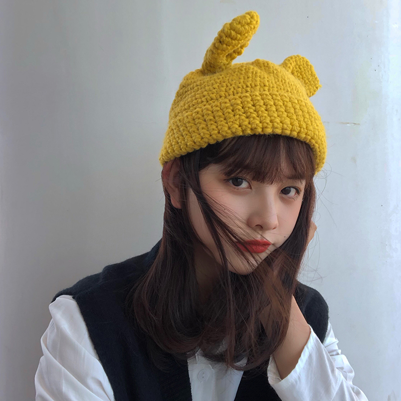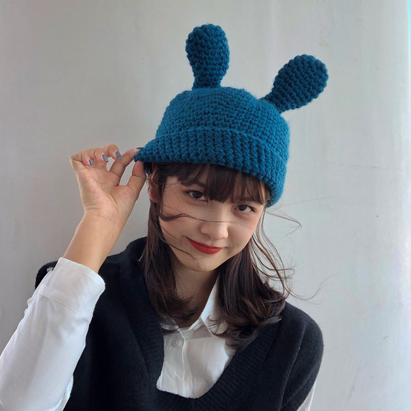 Aijia micro hand crochet hook for cute sweet and sweet rabbit ears wool cord hat children autumn and winter retro warm knit hat