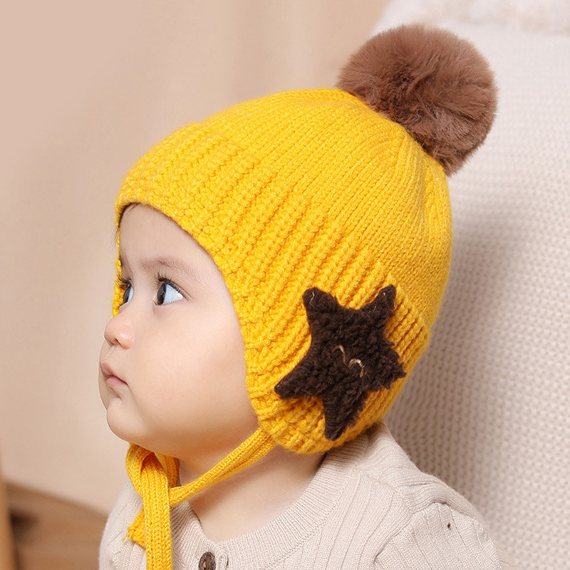 Baby hat autumn winter baby 0 newborn boy's baby wool line cap thickened warm 1-2 year old child hat