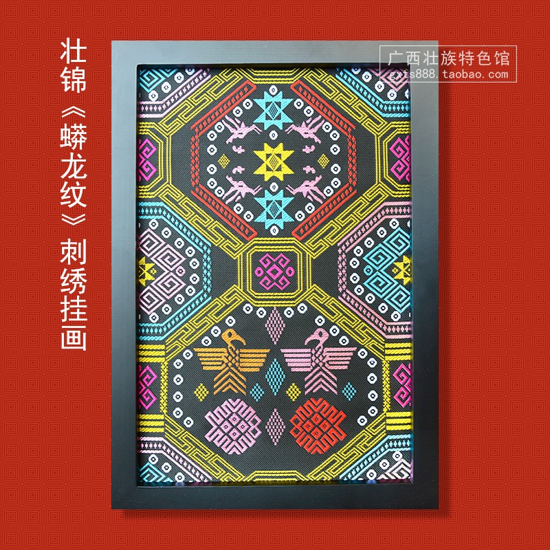 Guangxi Zhuang traditional totem decorative painting Zhuang splendid flower painting National characteristics decoration Gift craft gift decoration hanging painting