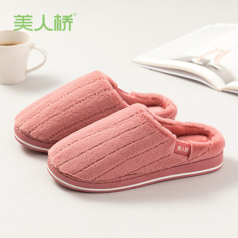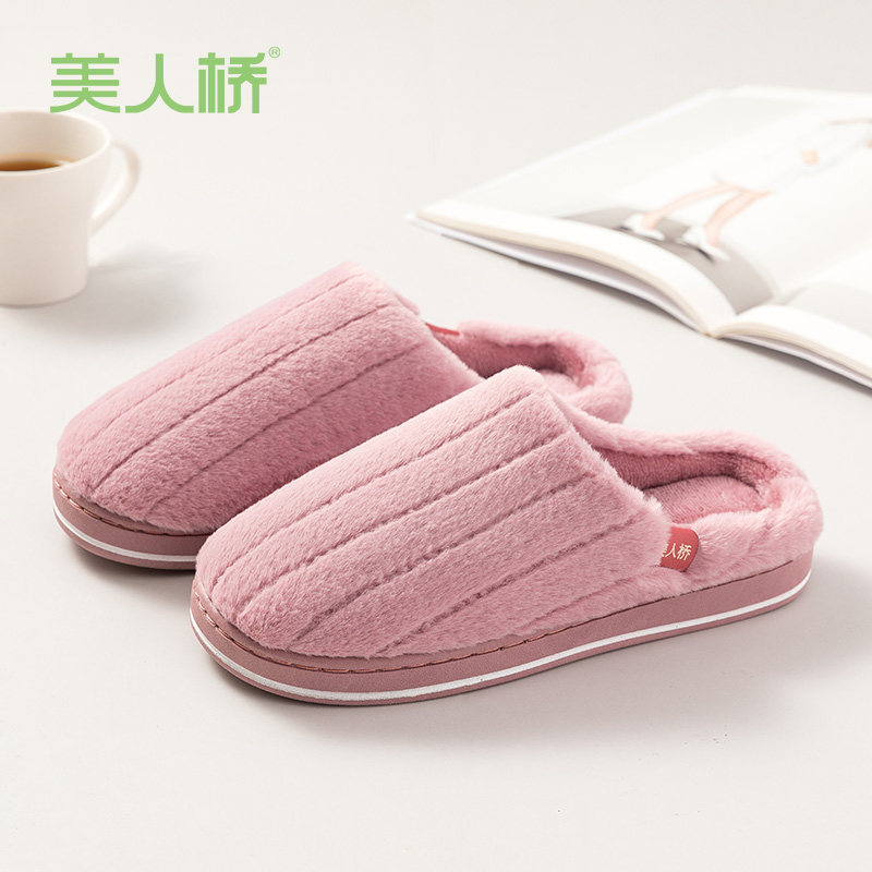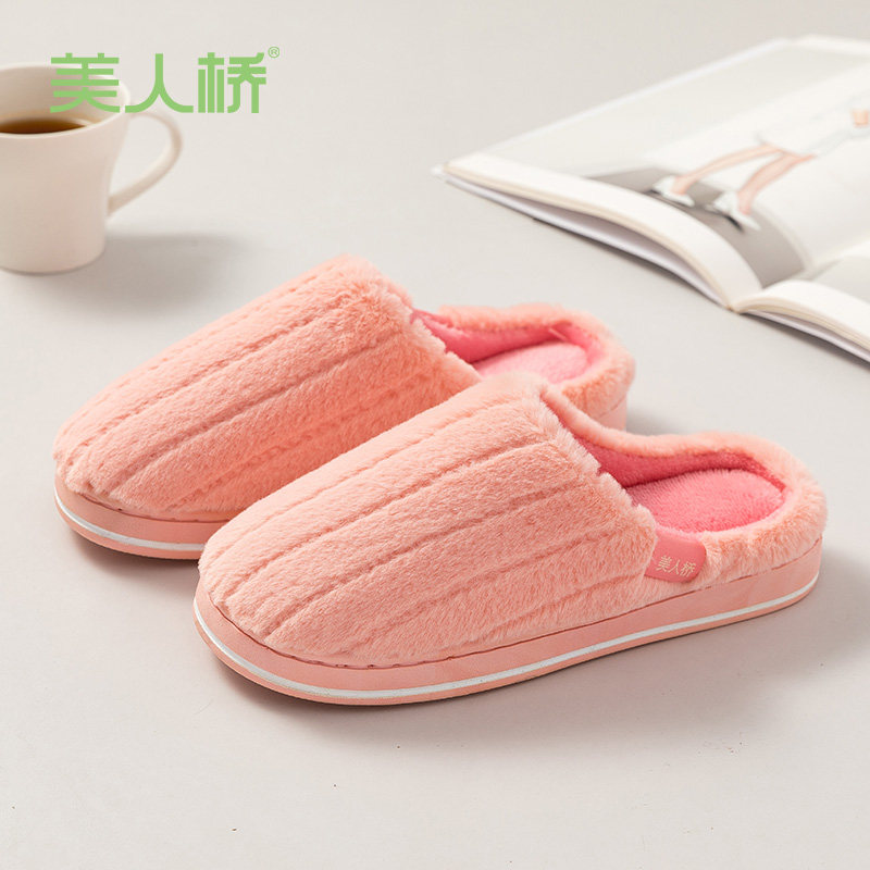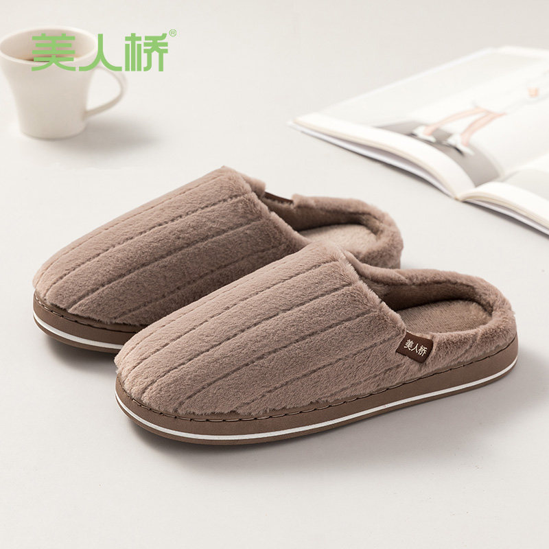 Beauty Bridge Cotton Slippers Keep Warm Autumn and Winter Indoor Home Home Couple Men Plush Thick Bottom Winter Wear Anti-slip