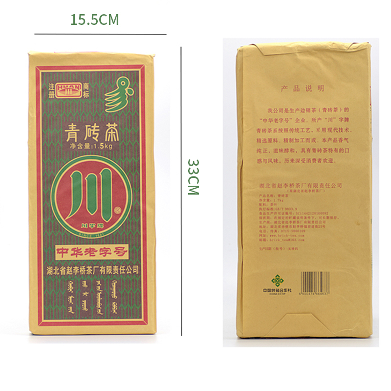 Green brick tea 1500g Zhao Liqiao Sichuan character Inner Mongolia 1 5kg brick tea Mongolian black brick milk tea tea egg special