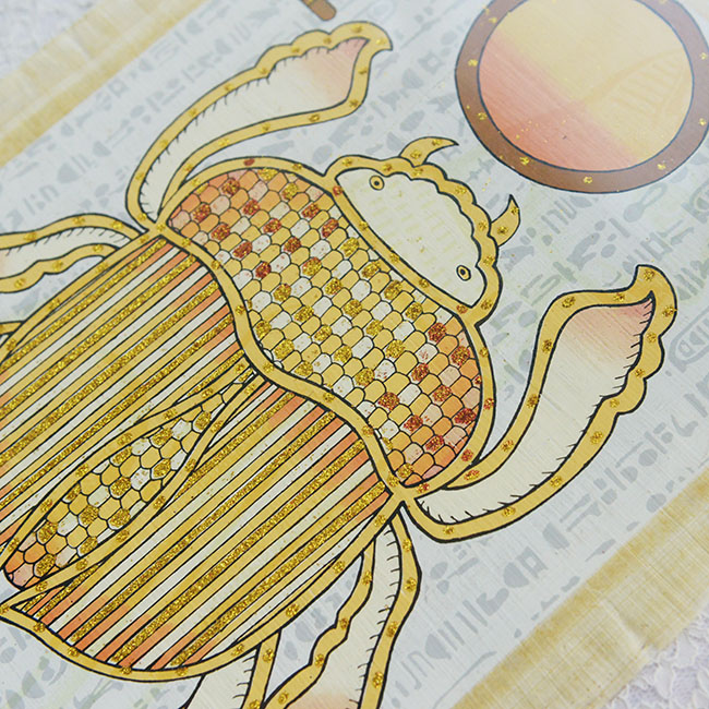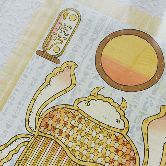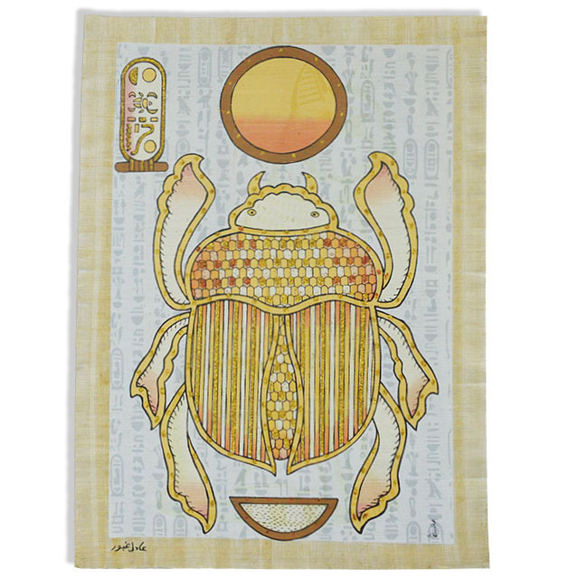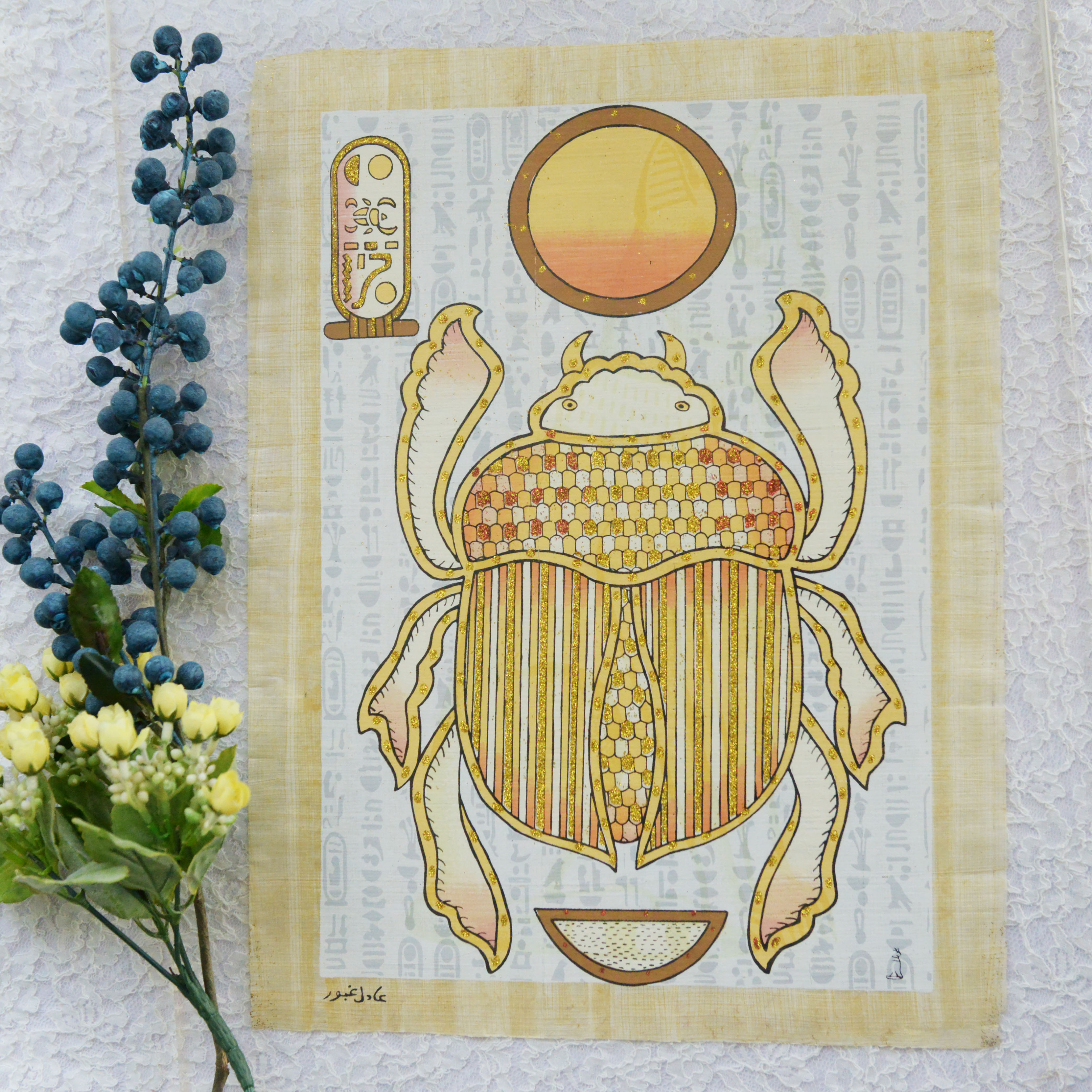 Egyptian hand-painted papyrus luminous effect Scarab multicolored gold powder 42*32cm