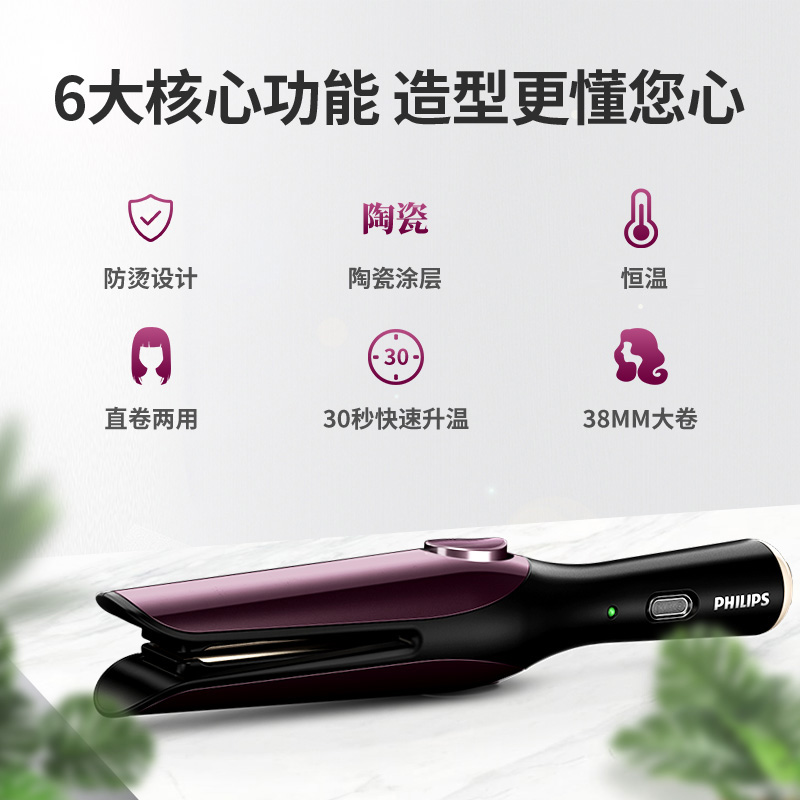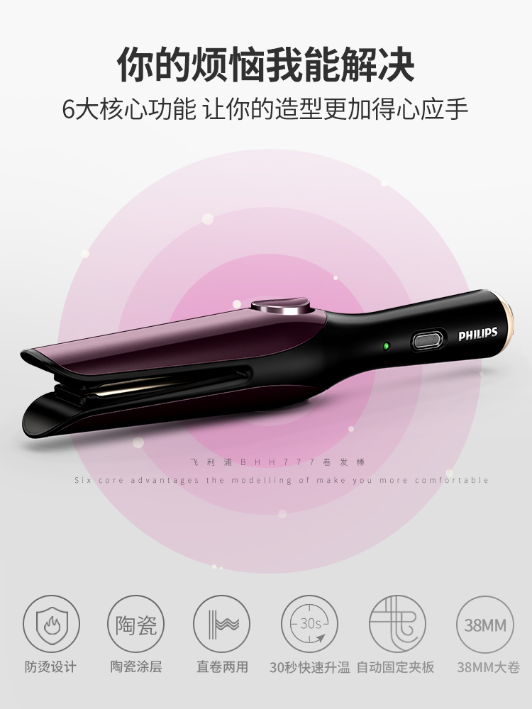 Philips Plywood Straight Hair Curly Hair Dual-use Theorist Sloth Straight Plate Clip Egg Roll Head Water Ripple Big Roll Hair Stick